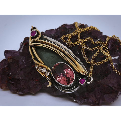 RTS - 14k - Eye of Horus, 7.2ct Pink tourmaline, ruby and diamond necklace - Video⏯