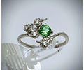 This beautiful ring is a standout favorite among all the styles, and it's easy to see why. Crafted using the lost-wax method and made from solid .925 sterling silver, it's a true delight designed for everyday wear. This stunning piece showcases engraved wood grain, delicate cherry blossoms, CZ's for added sparkle, and a charming .50ct Uranium glass stone from the 1950s.