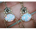 There's just something about glass enamel that just makes me happy inside. For the enamel drops, I used old Tombac enameling brass castings from around 1910/20s, delicately painted and torch-fired in 3 colors. Vintage brass flowers from the same time frame and modern synthetic white opals. The earrings are triple silver plated for long-lasting wear and hand from sterling silver lever back ear wires.