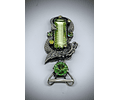 Entirely hand-fabricated in sterling silver and vintage Uranium glass. I call these Art pieces - Galaxy dragons, and they are sure to please! These took me about 10 hours to make, and are made of solid sterling silver. The stones used are vintage uranium glass with the larger stone being antique. For this Galaxy dragon, I used Vaseline yellow, yellow opal, and peridot green uranium glass.