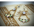RTS - Art Deco inspired, Glass enamel & gemstone earrings