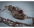 The central feature of this remarkable piece is the antique .950 silver perfume bottle from the 1920s, its scent holes sealed and filled with cremains. These ashes are securely encapsulated behind the delicate filigree, making this jewelry a heartfelt tribute to cherished memories.