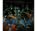316 Surgical stainless steel lever-back ear wires, Stainless steel settings, and silver plated brass. These fun and whimsical earrings have tons of movement! Loaded with Green opal uranium glass and Apple green uranium glass. These have a cool little hidden feature, The Luna month glows in the dark!