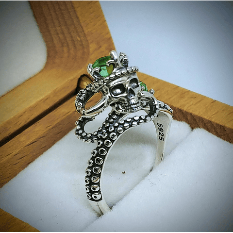 ☢ Octopus tentacles, skull and vintage UG glass ring - Sterling