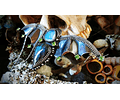 Her form is adorned with my own intricate filigree, an homage to ancient craftsmanship and the secrets of the night. At her heart lies a magical labradorite, an ethereal stone that seems to radiate an inner glow, capturing the very essence of moonlight's enchantment.