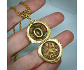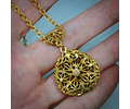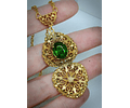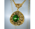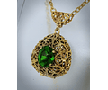 Hand fabricated from vintage components. I used a vintage New old-stock gold-filled filigree locket, did my thing to it, and added the setting that holds the 12x10mm Tourmaline green Uranium glass stone. This classic perfume locket hangs from an 18", 14k gold-filled chain.