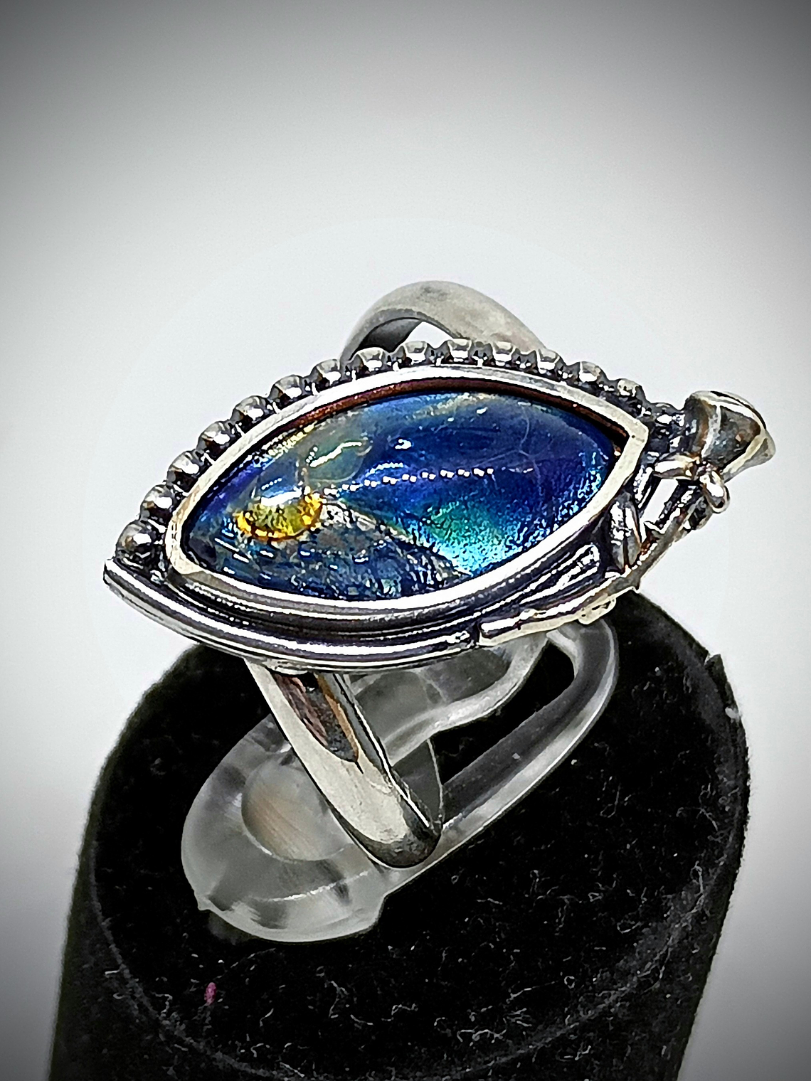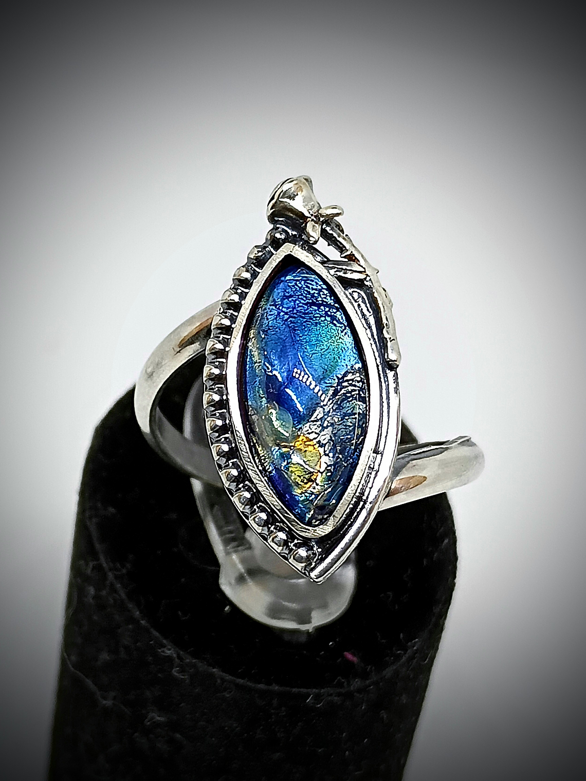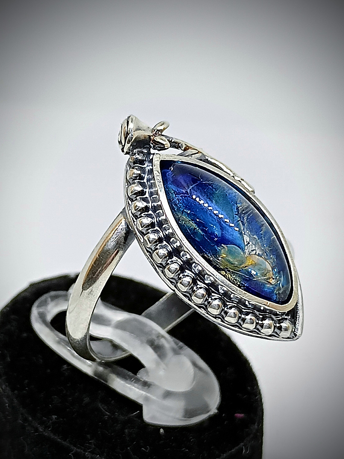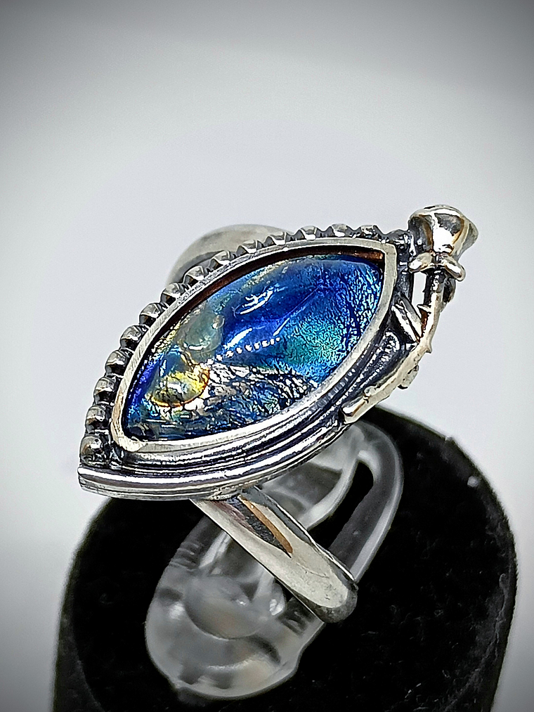 "Victorian" rose - Vintage Blue Dragons breath glass ring style 3 - Sterling